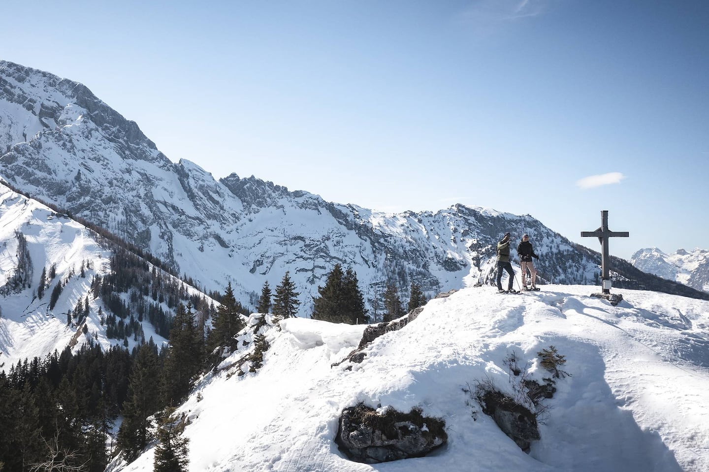 Verschneite Gipfel ragen majestätisch in den kristallklaren Himmel und die malerische Landschaft präsentiert sich in ihrem weißen Prachtkleid. Der Winter in Berchtesgaden ist eine vielseitige Jahreszeit, die Aktivität und Genuss vereint. Berchtesgaden bietet ideale Bedingungen für einen Familienurlaub im Winter. Kurze Wege zwischen den vielfältigen Aktivitäten und ein breites Angebot an Ausflugszielen sorgen dafür, dass sowohl Erwachsene als auch Kinder voll auf ihre Kosten kommen. Ergänzt wird das Angebot durch stimmungsvolle Winterveranstaltungen und zahlreiche Sportmöglichkeiten, die den Aufenthalt zu einem abwechslungsreichen Erlebnis für die ganze Familie machen.