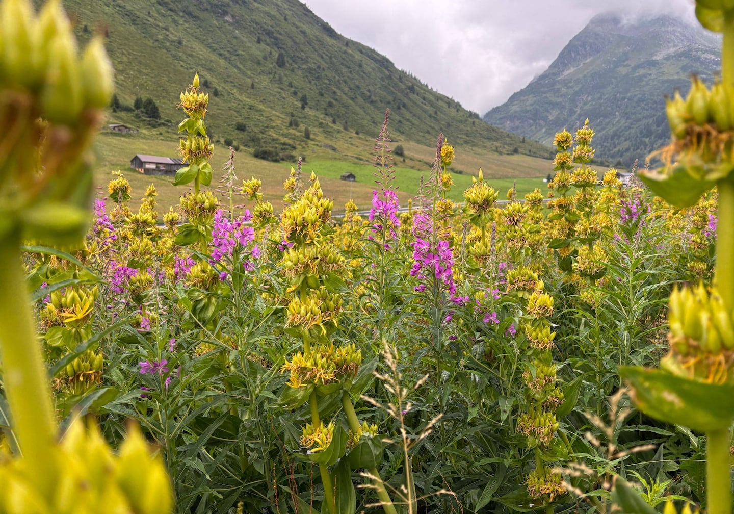 Wir starten in die Woche mit einer geführten E-Biketour mit der Bikeschule Galtür. Nach einer Einschulung für die Räder durch Bikeguide Christian Zangerle geht es auch schon los. Auf gut angelegten Radwegen geht es von Galtür aus vorbei an saftigen Blumenwiesen und dem gelb blühenden, einzigartigen Enzianfeld bis nach Ischgl. Der ortskundige Christian erzählt unterwegs Wissenswertes über Land und Leute. Was hat es mit den vielen Steinmauern in der Stadt auf sich? Warum mäht man bei Galtür die Blumenwiesen zu einem besonders späten Zeitpunkt? Und weshalb fasziniert der Jamtalferner-Gletscher Forscher aus aller Welt?