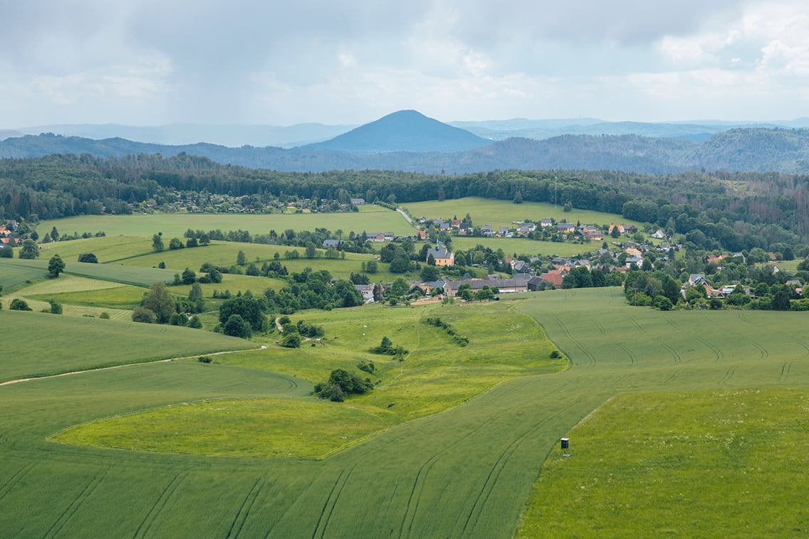 Wer den Ausblick vom Saupsdorfer Hausberg genießen will, muss ihn sich verdienen. Vorbei an liebevoll restaurierten Umgebindehäusern führt der Weg aus dem Ort hinaus. Nach einem kurzen Anstieg über Wiesen und Felder ist der 496 Meter hohe Gipfel erreicht. Der Aufstieg lohnt sich gleich doppelt: Oben angekommen wartet nicht nur eine schöne Aussicht auf das Elbsandsteingebirge. In der seit über 170 Jahren bewirtschafteten Wachbergbaude kann man sich auch mit einem herzhaften Essen stärken, und die eisgekühlte „Wachbergbrause“ ist hervorragend gegen den Durst.