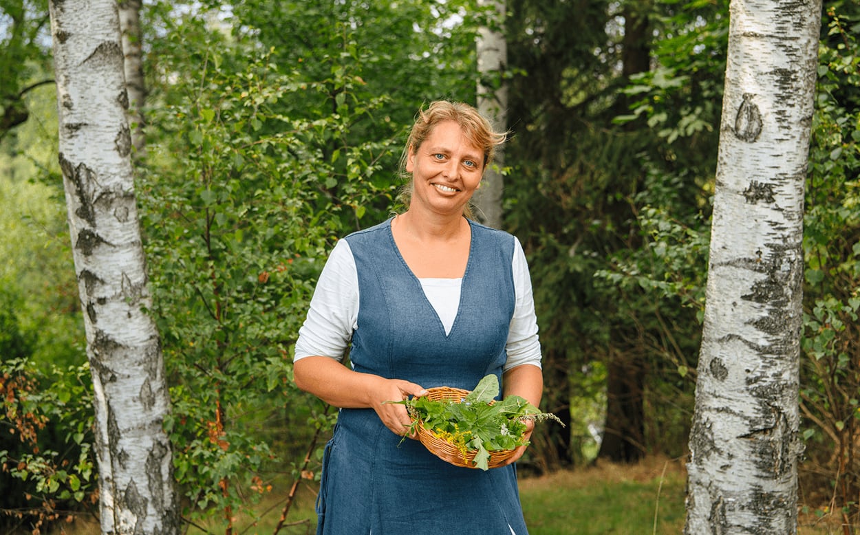 Diese wilden Grünen hat Janet Hoffmann am Wegesrand gesammelt: Brennnessel, Löwenzahn, Bärenklau, Sauerampfer, Spitzwegerich, Giersch, Fliederblüten, Vogelmiere, Buchen- und Lindenblättchen, Fichten- und Lärchentriebe, Wilde Möhre, Schafgarbe, Gänseblümchen, Labkraut, Knoblauchrauke, Beifuß und viele mehr.