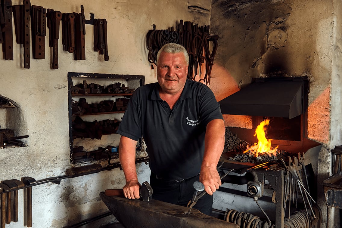 Handwerk hat in Blankenhain lange Tradition: Die Dorfschmiede beherrschen heute noch die Kunst des Damaszenerschmiedens. Dabei werden Schichten von hartem und weichem Stahl im Schmiedefeuer mehrmals glühend heiß erhitzt, gefaltet und dann mit kräftigen Hammerschlägen verschweißt – ein faszinierendes Schauspiel, das man direkt miterleben kann. Auch für das leibliche Wohl ist in Blankenhain gesorgt: Auf dem Biohof Franke mit eigener Mosterei oder in Soltis Obstgarten mit hausgemachten Marmeladen und Kuchen finden sich regionale Spezialitäten direkt vom Hof. Wer aktiv werden möchte, kann die Umgebung beim Baden im Freibad Mannichswalde, beim Radeln auf der Bauerngartenroute oder beim Paddeln auf der Kobertalsperre entdecken.