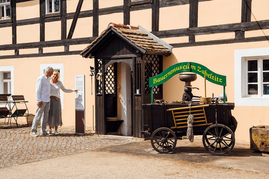 Nur wenige Kilometer von Meißen entfernt überrascht Zabeltitz mit einem barocken Ensemble, das man in einem Dorf dieser Größe kaum erwarten würde. Herzstück ist das von Johann Christoph Knöffel erbaute Palais mit Barockgarten, das mit seinen Alleen, Blumenbeeten und Skulpturen zum Flanieren einlädt und bei Führungen Einblick in seine Geschichte gibt. Gleich daneben steht das Alte Schloss aus dem Jahr 1598, dessen historische Räume heute für Trauungen und Veranstaltungen genutzt werden. Sehenswert sind auch die St. Georgen-Kirche mit spätbarocker Architektur und Renaissance-Elementen – hier fand Reichsgraf von Wackerbarth seine letzte Ruhestätte – sowie das liebevoll gestaltete Bauernmuseum, das das ländliche Leben vergangener Jahrhunderte zeigt. Der Ort ist zudem regelmäßig Schauplatz von Veranstaltungen wie dem „Frühlingserwachen“, dem Hubertusfest oder der stimmungsvollen Palais-Weihnacht.