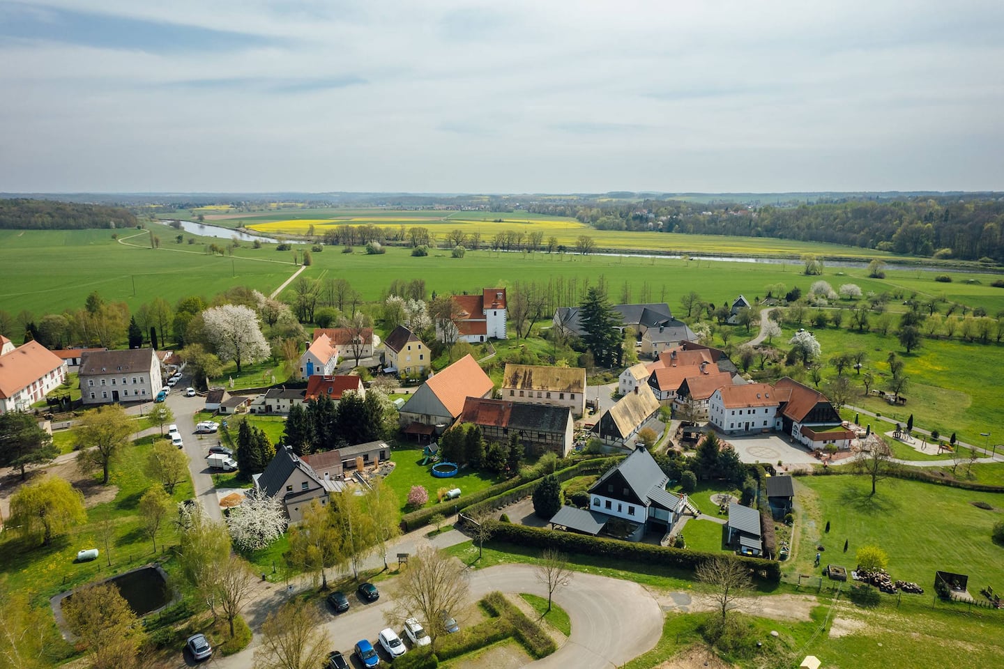 Nur 50 Kilometer von Leipzig entfernt liegt das denkmalgeschützte Dorf Höfgen im Herzen des Sächsischen Burgenlandes. Sieben Bauernhöfe aus liebevoll gepflegtem Fachwerk und eine kleine weiße Wehrkirche prägen das Ortsbild. Zwischen blühenden Streuobstwiesen fließt die Mulde in sanften Schleifen und lädt zu Ausflügen in die grüne Auenlandschaft ein. Die Tradition der Müllerei ist hier bis heute lebendig: Im Dorfkern gewährt die historische Wassermühle tiefe Einblicke in die alte Handwerkskunst. In Sichtweite schwimmt zudem eine der letzten Schiffmühlen Europas. Eindrucksvoll ist auch die Paltrockwindmühle im Grimmaer Ortsteil Schkortitz. Ihr Mühlenhaus ist auf einem bodennahen Rollenkranz gelagert, sodass sich das gesamte Gebäude in den Wind drehen kann.
