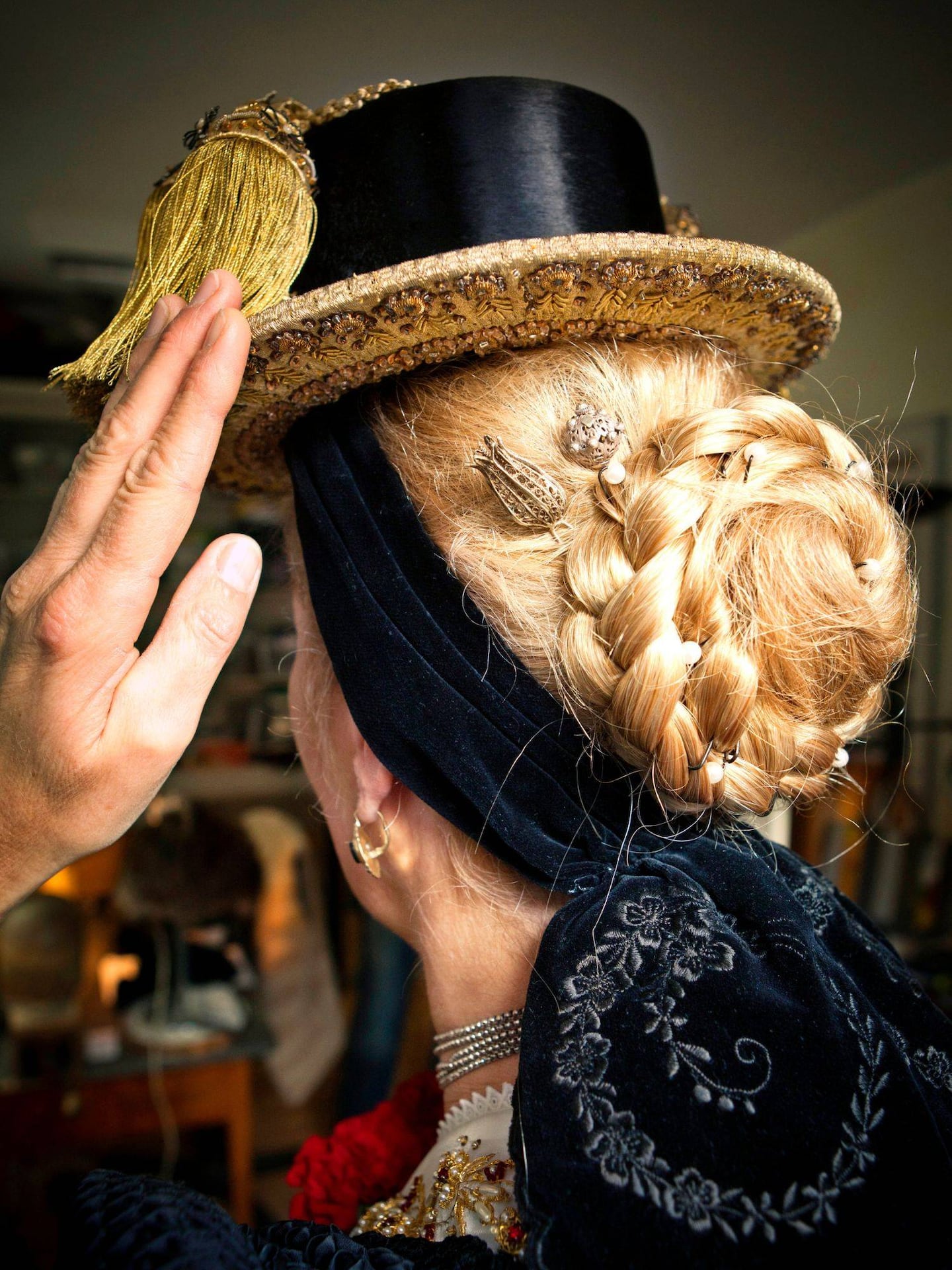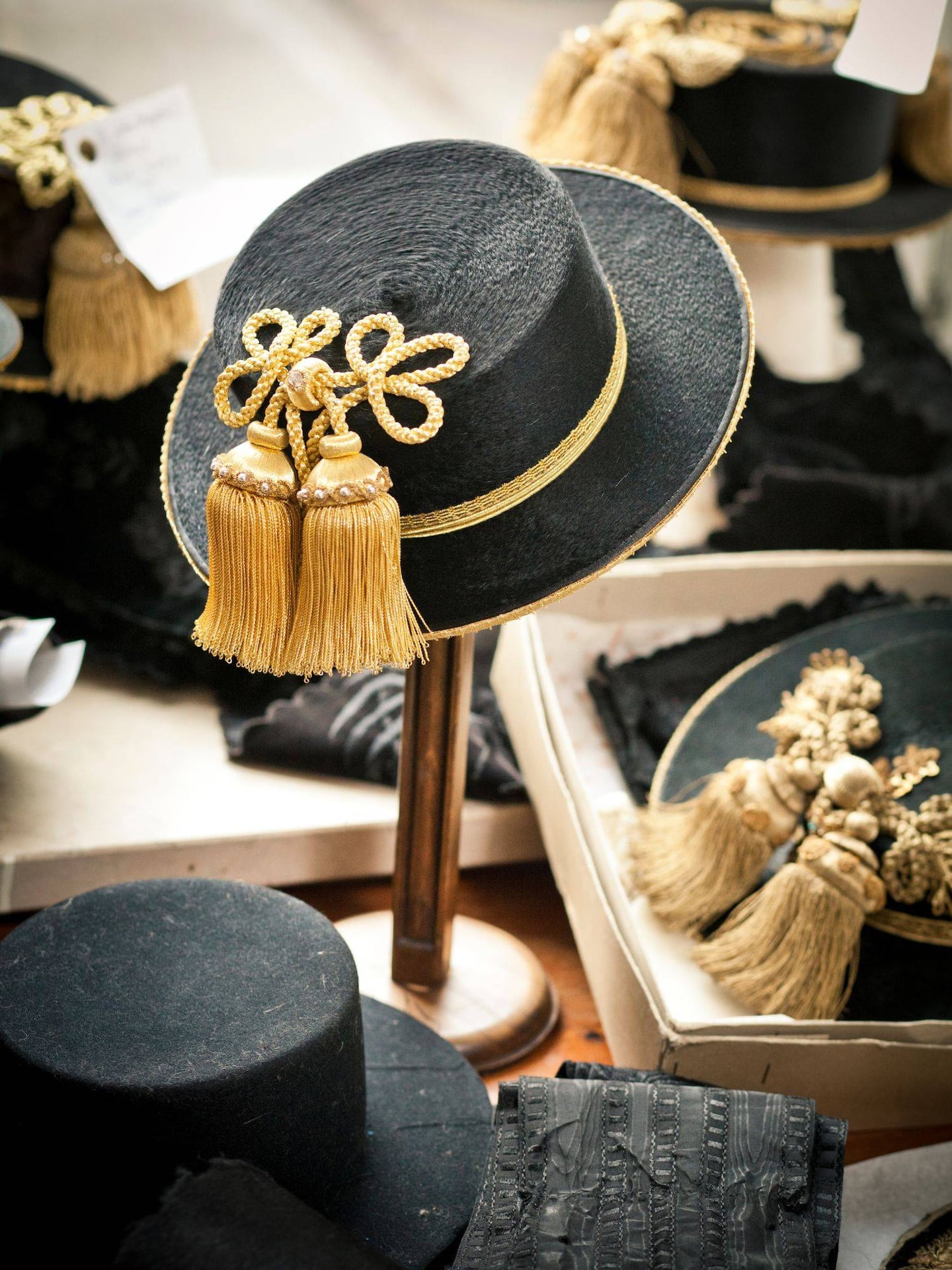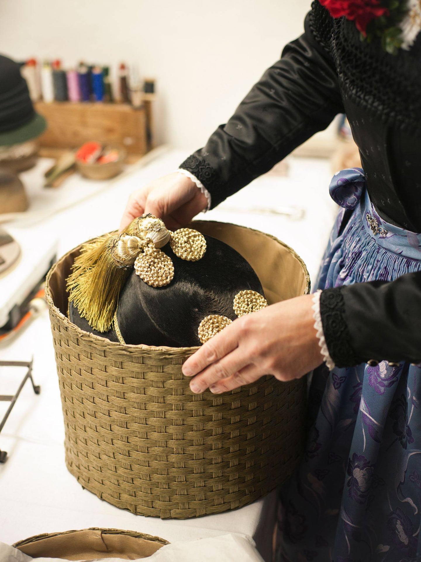 Es gibt den Hut in zwei Varianten: mit Goldquaste für Festtage und mit Samtborte für Sonntage.