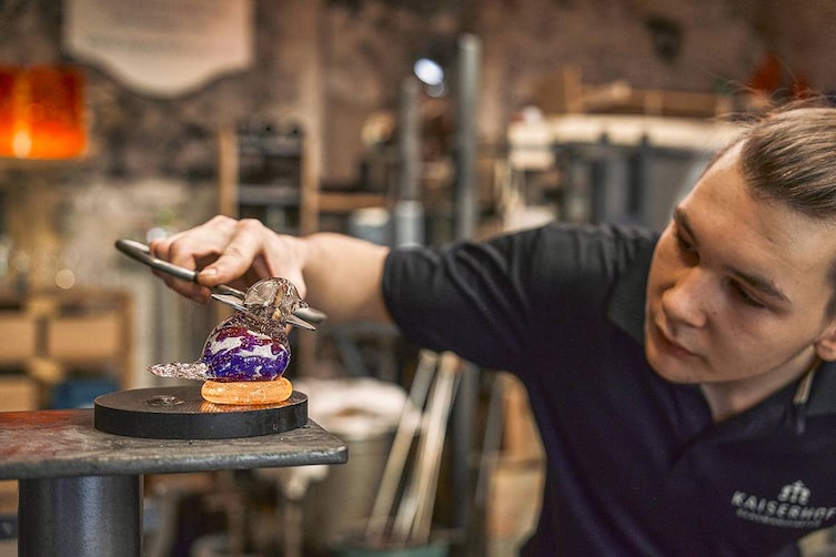 Ein Hingucker auf dem Christbaum, das sind die handgefertigten Christbaumkugeln der Kaiserhof Glasmanufaktur. Die Unikate werden unter dem jahrhundertealten Gewölbe der ehemaligen kaiserlichen Jagdresidenz in Neuberg an der Mürz vom gelernten Schlosser Andreas Hafner und seinem Team in liebevoller Handarbeit hergestellt. „Das war eigentlich eine Schnapsidee“, meint Andreas Hafner, bezugnehmend auf die Geburtsstunde des Betriebs vor über zehn Jahren. Mittlerweile zählt die Manufaktur zu den wenigen Betrieben in Österreich, die das traditionelle Handwerk an dem über tausend Grad heißen Ofen, der das ganze Jahr über seine Temperatur hält, beherrschen. Die über 250 verschiedenen Farbgläser garantieren farbenfrohe Unikate. Auch Valentin, Österreichs einziger Glasmacherlehrling, hat vor fast vier Jahren in der Kaiserhof Glasmanufaktur sein berufliches Glück gefunden.