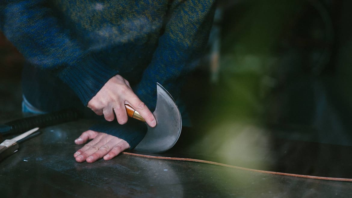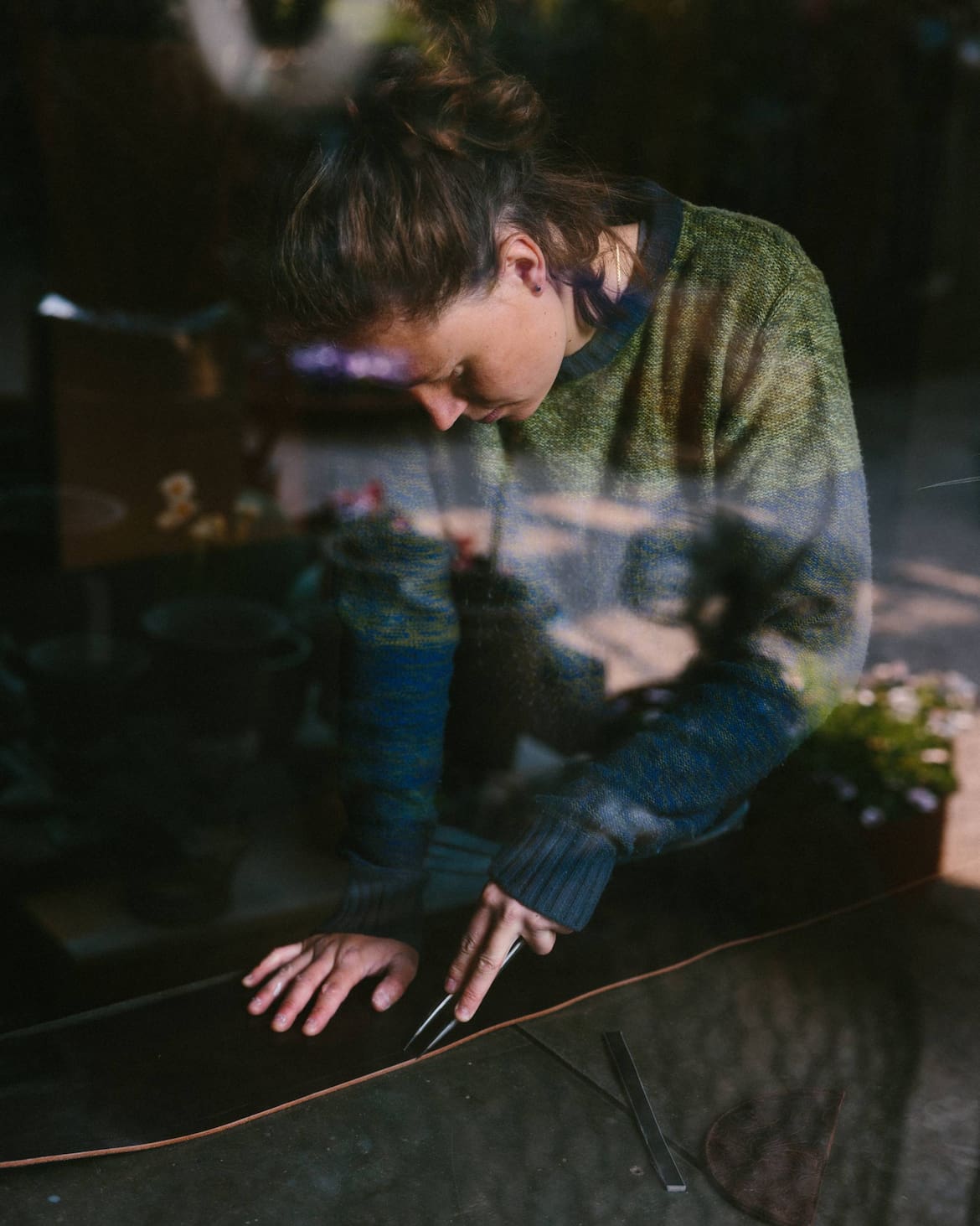 Ihr Mund lächelt freundlich, während ihre Augen hoch konzentriert sind. Ein falscher Schnitt im Leder ist schnell passiert und lässt sich nicht mehr rückgängig machen. Darum führt Lucy Schmidl das Schneidwerkzeug namens Halbmond sehr präzise über ihr Arbeitsstück. „Alles gut gegangen, nichts passiert“, meint sie grinsend und widmet sich dem nächsten Schritt.