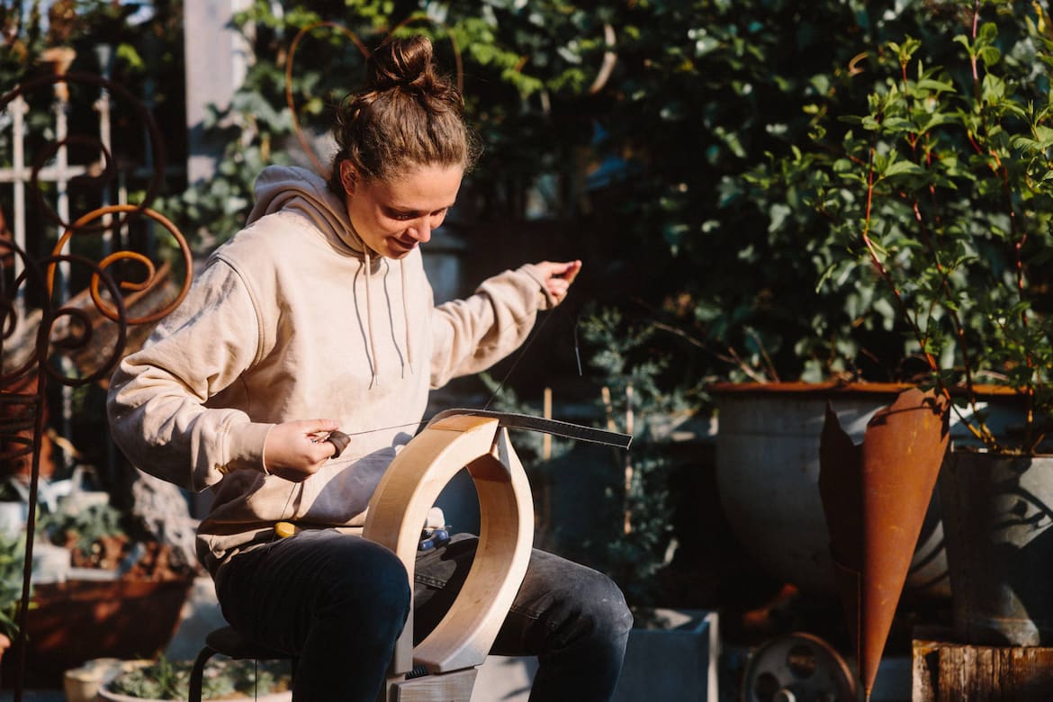 Neben einer großen Portion Einsatzbereitschaft, benötigt man als Sattlerin vor allem Fingergeschick, eine gute Auffassungsgabe und auch etwas Kraft. Diesen Eindruck erweckt nicht zuletzt die große Nadel, die Lucy nun schwungvoll durch das dicke Leder sticht. Dabei trägt sie Fingerlinge an den Händen, die es ihr ermöglichen, den Faden richtig festzuziehen, ohne dass er in ihre Haut schneidet. Das Endziel der Sattlerin ist nicht nur der gute Halt des Fadens, sondern in beruflicher Hinsicht auch die Selbständigkeit.