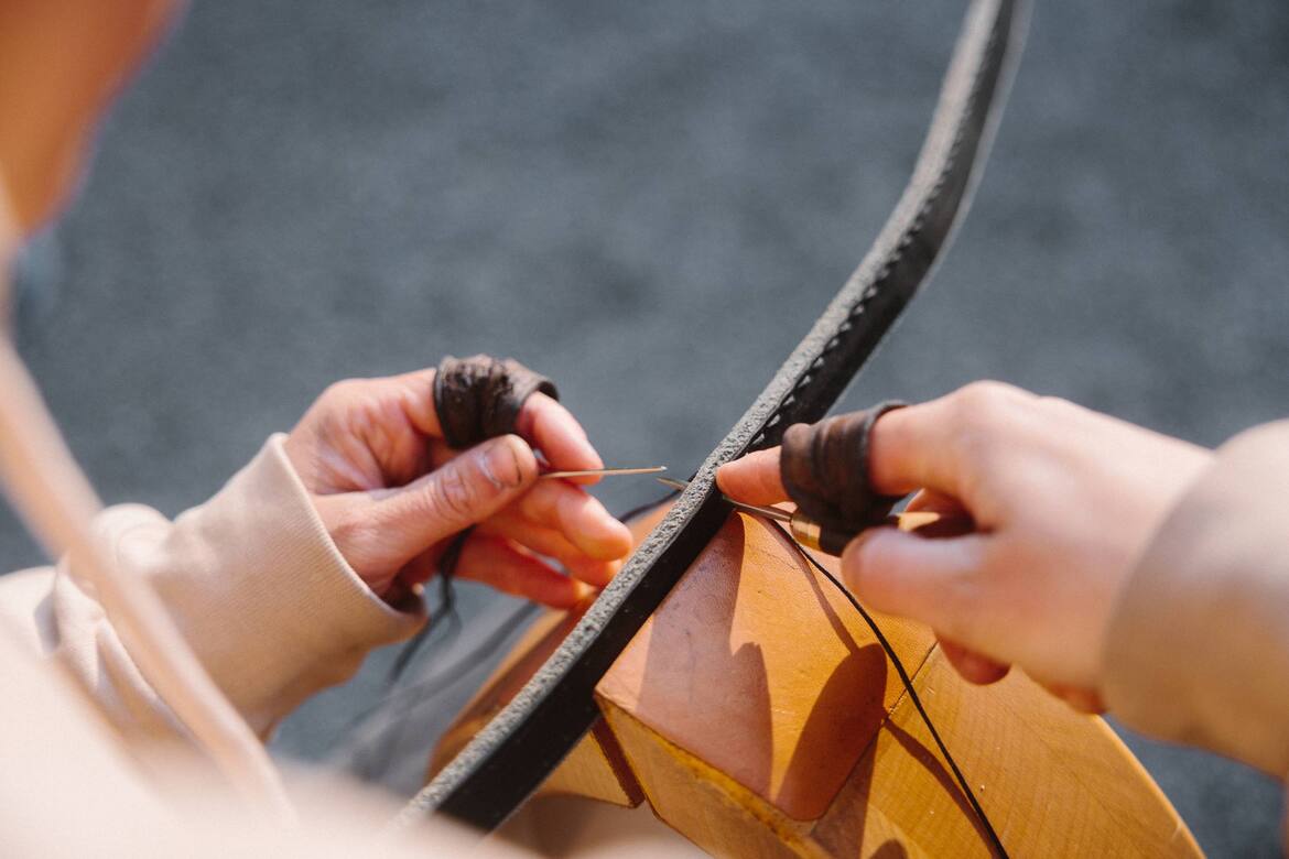 Einen Sattel herzustellen erfordert viele Einzelschritte – jeder ist notwendig, keiner darf ausgelassen werden, sonst sitzt und hält er am Ende nicht richtig. Wissen, Erfahrung und das nötige Werkzeug sind Grundvoraussetzung. „Man beginnt mit dem Herzstück des Sattels, dem Sattelbaum, der als stabilisierende Innenkonstruktion dient. Dieser muss matriziert und mit Sturzfedern ausgestattet werden. Danach wird in vorbereitenden Schritten die Sitzfläche mit den sogenannten kleinen Taschen und dem Halbmond genäht“, erklärt Lucy während sie erneut mit dem einem Halbmond ähnlichen Schneidwerkzeug durch das Leder gleitet.