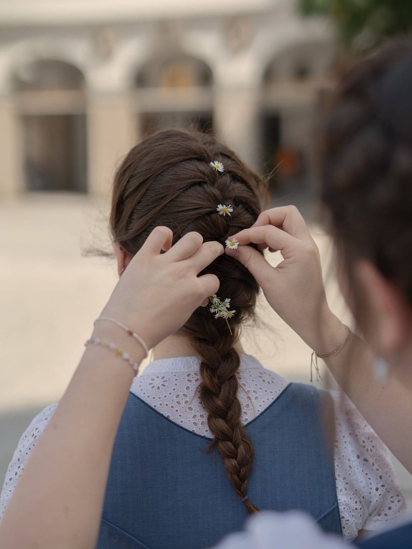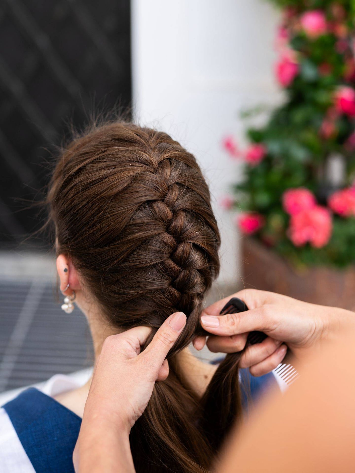 Besonderes Augenmerk gilt bei dieser Frisur auch der Vorderpartie: Die Strähnen um das Gesicht werden nach Belieben schwungvoll gelegt – entweder glatt, oder mit leichter Welle. So entsteht ein stimmiger Übergang vom Gesicht zum geflochtenen Zopf.Tipp: Für eine persönliche Note gerne kleine Blüten in den Zopf stecken. Oder einen Hut dazu tragen!