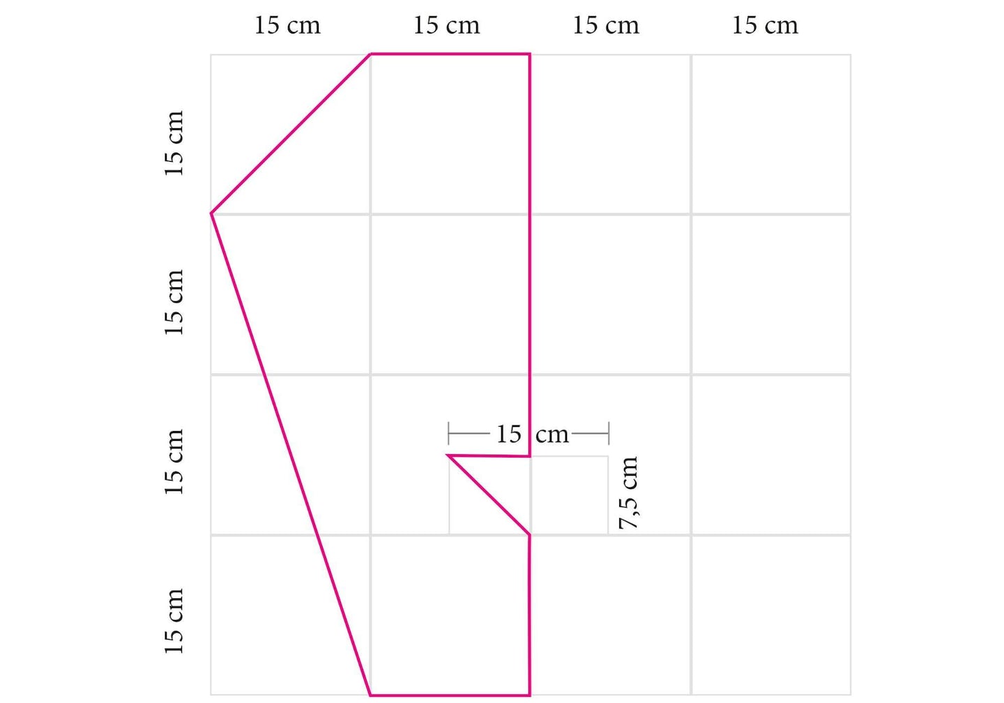 Für die Schablone auf der Graupappe den Umriss des halben Drachens (siehe Skizze 1) aufzeichnen und ausschneiden. Das gelingt am leichtesten, wenn man sich zur Orientierung einen 15-cm-Raster vorzeichnet. Dann das gelbe Spinnaker-Tuch mittig falten, die Schablone genau am Falz auflegen und nachzeichnen.