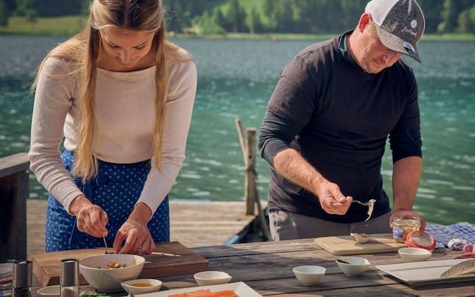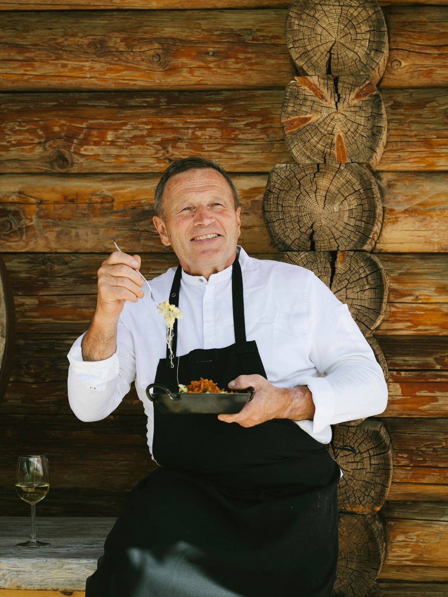 Dass der Galtürer Bürgermeister Hermann Huber auch noch Käse macht, war eher ein Zufall. Oder ist es umgekehrt? Jedenfalls ist das Senner-Dasein die große Leidenschaft des Landwirts, Hoteliers und gelernten Kochs. Inmitten herrlicher Käselaibe verrät er uns, wie die Farbe und die Löcher in den Käse kommen und was man tun muss, um bei der Almkäseolympiade in Galtür silberne und goldene Harfen zu gewinnen. Anschließend geht es hinauf auf die familieneigene Faulbrunn Alm, wo wir mit Blick bis hinunter nach Ischgl traditionelle Tiroler Kasspatzln zubereiten, die man einfach lieben muss!