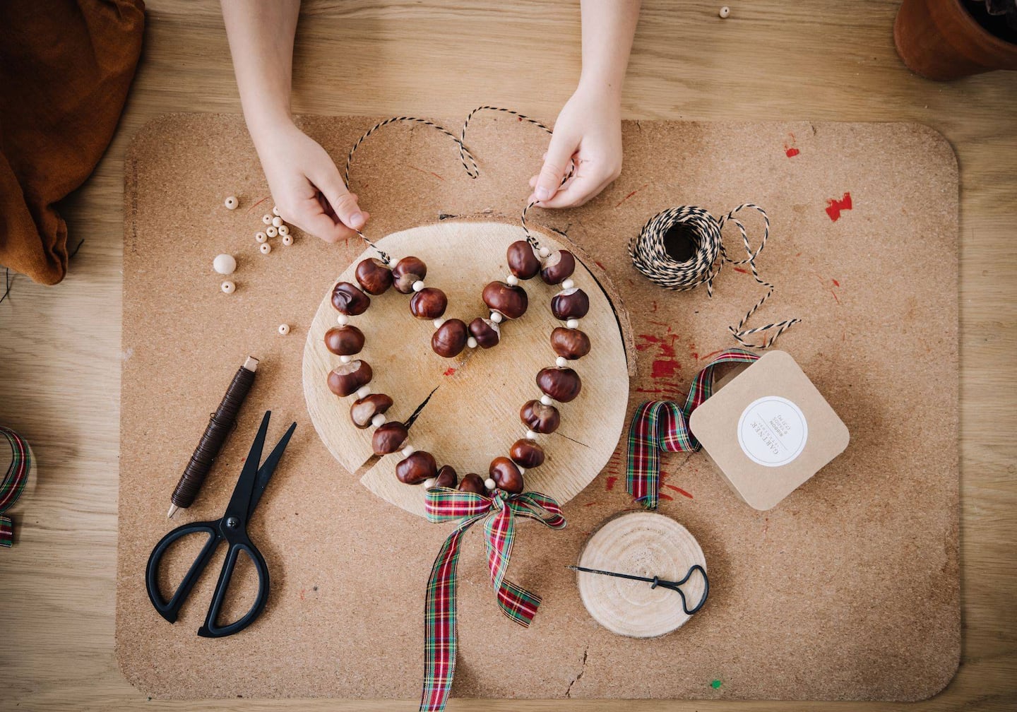 Erst Kastanien sammeln, dann formen: und schon entsteht ein herbstliches Kunstwerk, das Türen, Fenster oder Wände hübsch dekoriert.