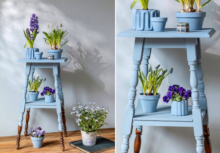 Ein altes Möbelstück wird mit blauer Kreidefarbe zum neuen Blickfang.