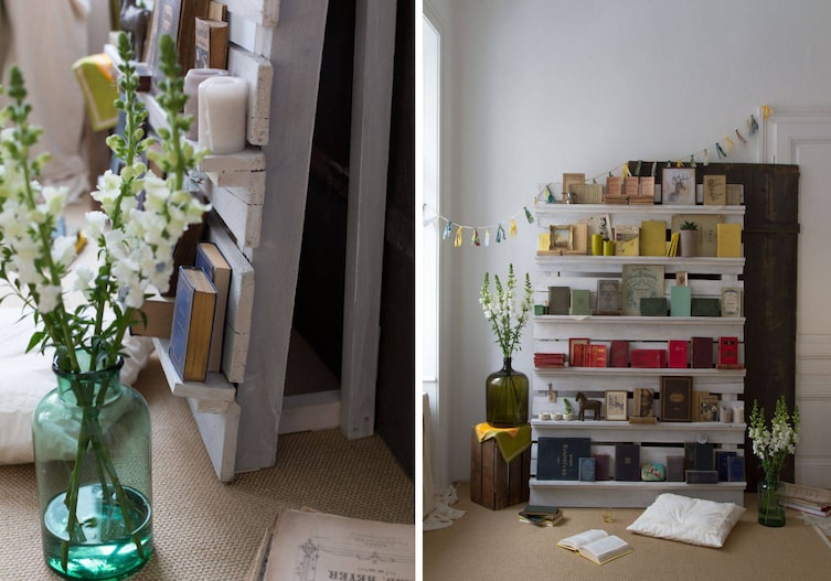 Palettenregal: Ausgedacht, umgebaut, Bücher verstaut