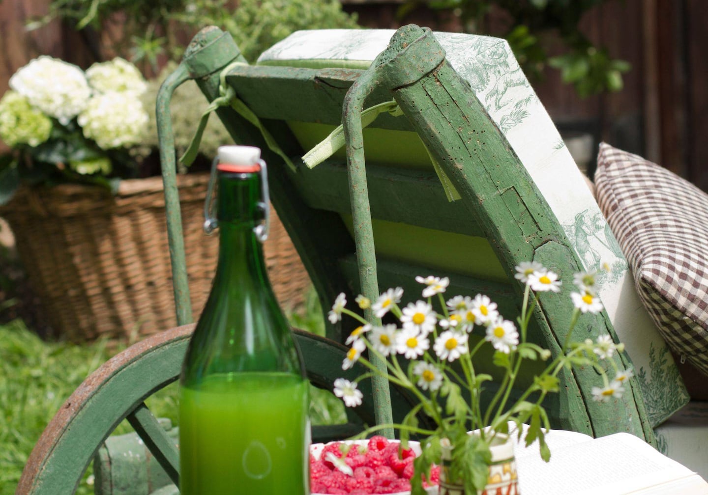 Einst hat man sie benützt, um das Brennholz zum Haus zu transportieren, heute lädt sie zum Entspannen ein. Wir haben eine alte Schubkarre zum Liegestuhl umfunktioniert.