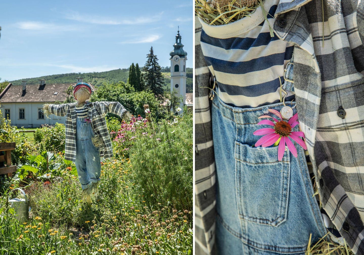 Ein altes Reindl oder einen schäbigen Hut aufsetzen – und fertig ist die lustige Vogelscheuche.