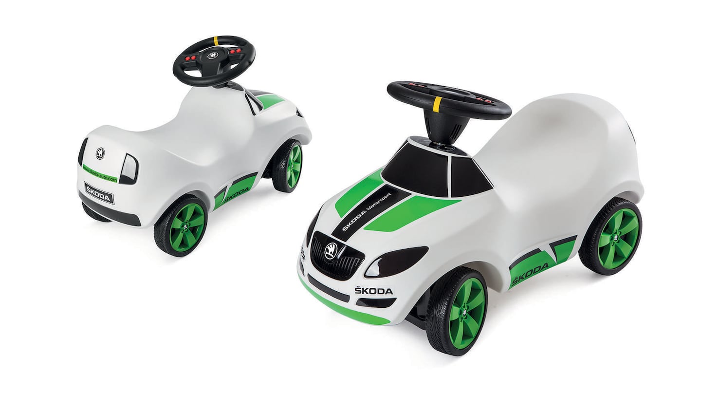Für den quicklebendigen Nachwuchs ist das R5 Kinder-Rutschauto das ideale Geschenk. Mit vier verschiedenen Signalen am Lenkrad und Fabia R5 Aufklebern überzeugt er jeden kleinen Wagenlenker.