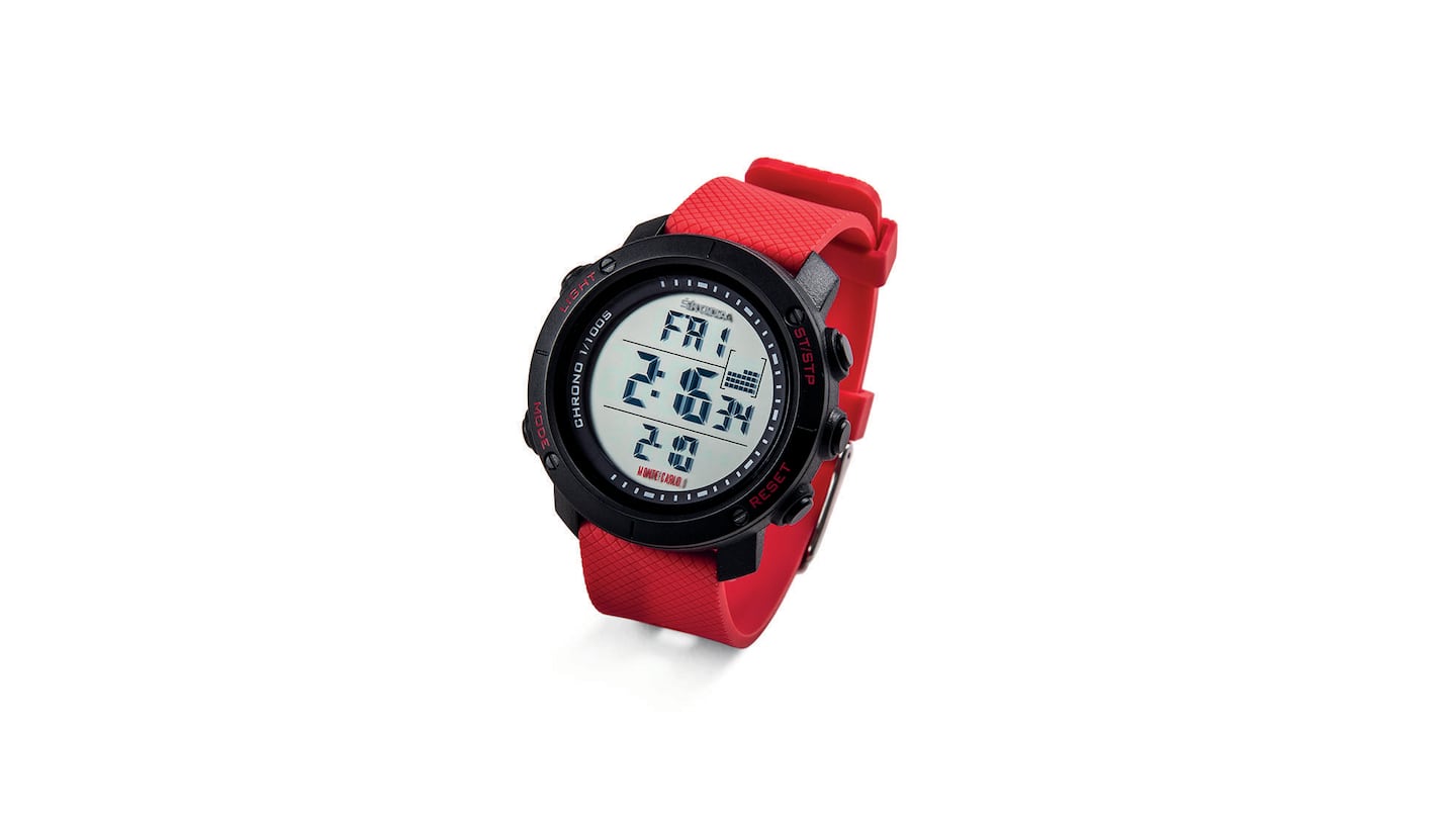 Das rote Silikon-Armband mit dem schwarzen Gehäuse macht jedes Handgelenk zum absoluten Hingucker. Mit der Monte Carlo Digitaluhr haben Sie die Zeit immer im Blick: Stunde, Minute, Sekunde, Monat, Tag, Jahr und Woche werden auf dem Display angezeigt. Zusätzlich enthält die wasserdichte Uhr (bis 10 ATM) eine Alarm- und Snooze-Funktion sowie einen Timer.