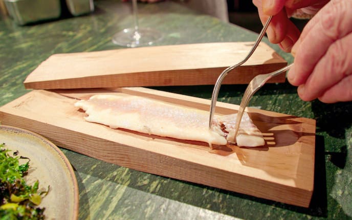 Hauptspeise Bachsaibling im Packerl Die Wirtsleute Anna und Thomas Huber verraten uns ihre besondere Zubereitungsart für den Bachsaibling.