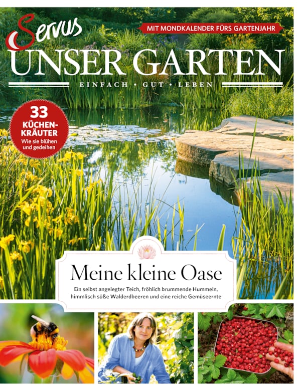 Jänner bis Juni Rezept Osterreinling Der Reinling, der so heißt, weil er auf althergebrachte Art in der Rein gebacken werden sollte, ist eine südösterreichische Eigenheit: Er wird mit allerlei Pikantem wie Schinken, Würsten, Kren, Senf und Eiern verspeist. Rezept Kräutersuppe Diese gesunde Kräutersuppe aus Vorarlberg besteht nur aus Kräutern, die man auch auf einer wildwachsenden Wiese findet. Rezept Erdbeertorte mit Kräutercreme Diese Erdbeertorte schmeckt köstlich und ist aufgrund der sichtbaren halben Früchten auch ein wahrer Blickfang. Rezept Lammkoteletts mit Gurkensalat Frische Kräuter, butterzartes Lammfleisch und würziger Käse: Ein sommerlicher-Salattraum. Hauptspeise Walser Kääsknöpfle Jause Faschingskrapfen selber machen Juli bis Dezember Rezept Apfelstrudel Es geht nichts über einen köstlichen klassischen Apfelstrudel, wie er in Österreich Tradition hat. Rezept Kürbisritschert mit Speck und Salbei Ein traditioneller Eintopf aus Graupen, Kürbis, Erdäpfeln, Räucherspeck und knusprig gebratenem Salbei. Rezept Gans mit Rotkraut und Erdäpfelknödel Nichts schmeckt verlockender als eine gut gegarte Gans. Innen schön saftig und weich und eine Haut, die nur so knuspert. Fehlen dürfen dabei nicht die weichen Erdäpfelknödel und das süße Rotkraut mit Apfel und Zimt. Rezept Himbeersterne Mit Mandeln verfeinerter Mürbteig trifft fruchtige Himbeermarmelade und eine luftig-leichte Decke aus Staubzucker. Nachspeise Rosensorbet mit Walderdbeersauce Jause Physalis-Marmelade Servus in Stadt & Land Dezember 2023 Servus Gute Küche Herbst/Winter 2023 Servus Unser Garten 2023 Servus Kinder 4/2023 Servus Welt entdecken Allgemein Holen Sie sich die Servus-Newsletter! Gewinnspiel Gewinnspiele entdecken Ausflüge Advent in Kärnten: Zwischen Lichtern, Liedern und leiser Freude Mondkalender Die Servus-Mondpost: Ab sofort kostenlos