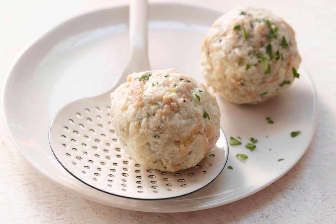 Knödel sollten beim Einlegen ins Wasser niemals am Boden laden, sondern gleich schwimmen. Dann weiß man, dass sie wunderbar flaumig sind.